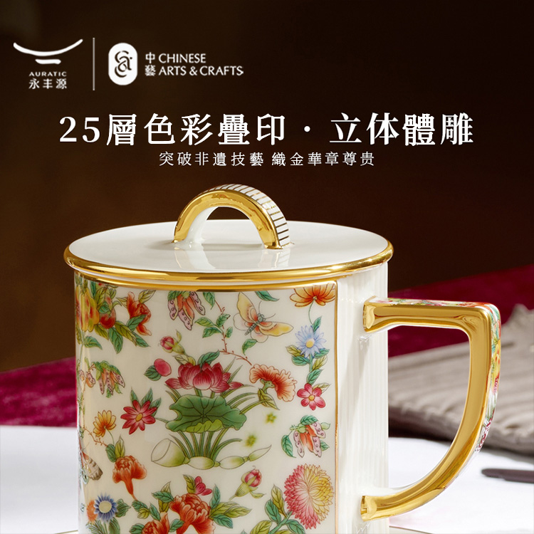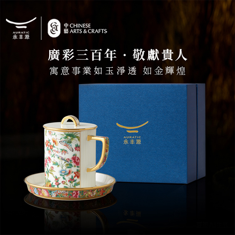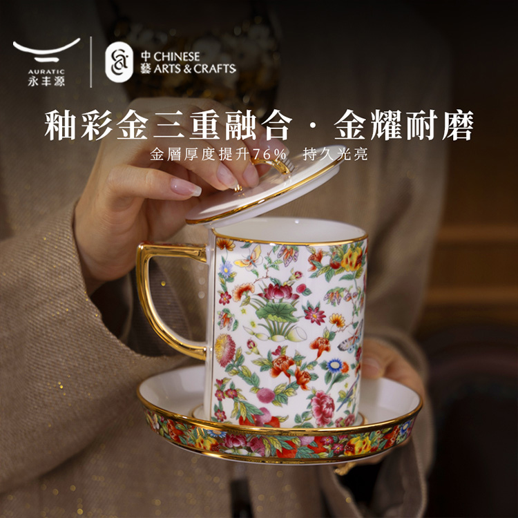 廣彩傳承三件套杯(430ml-金底浮雕)