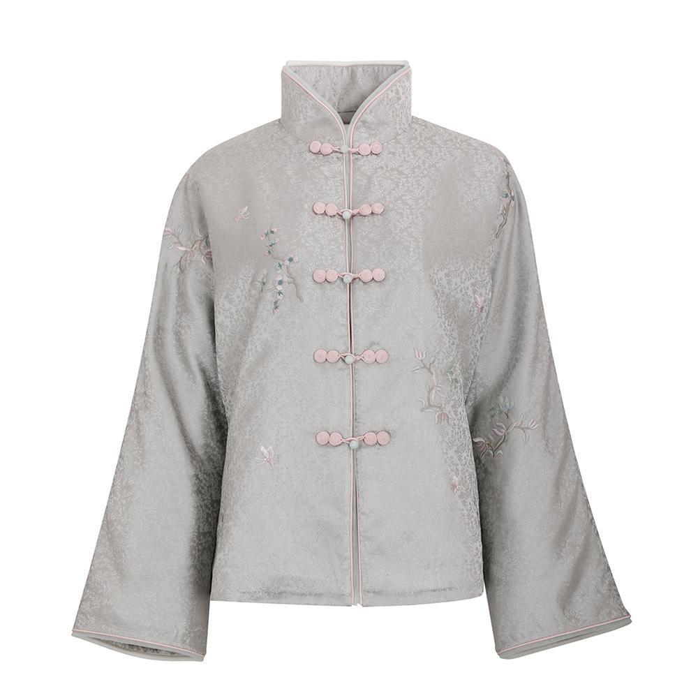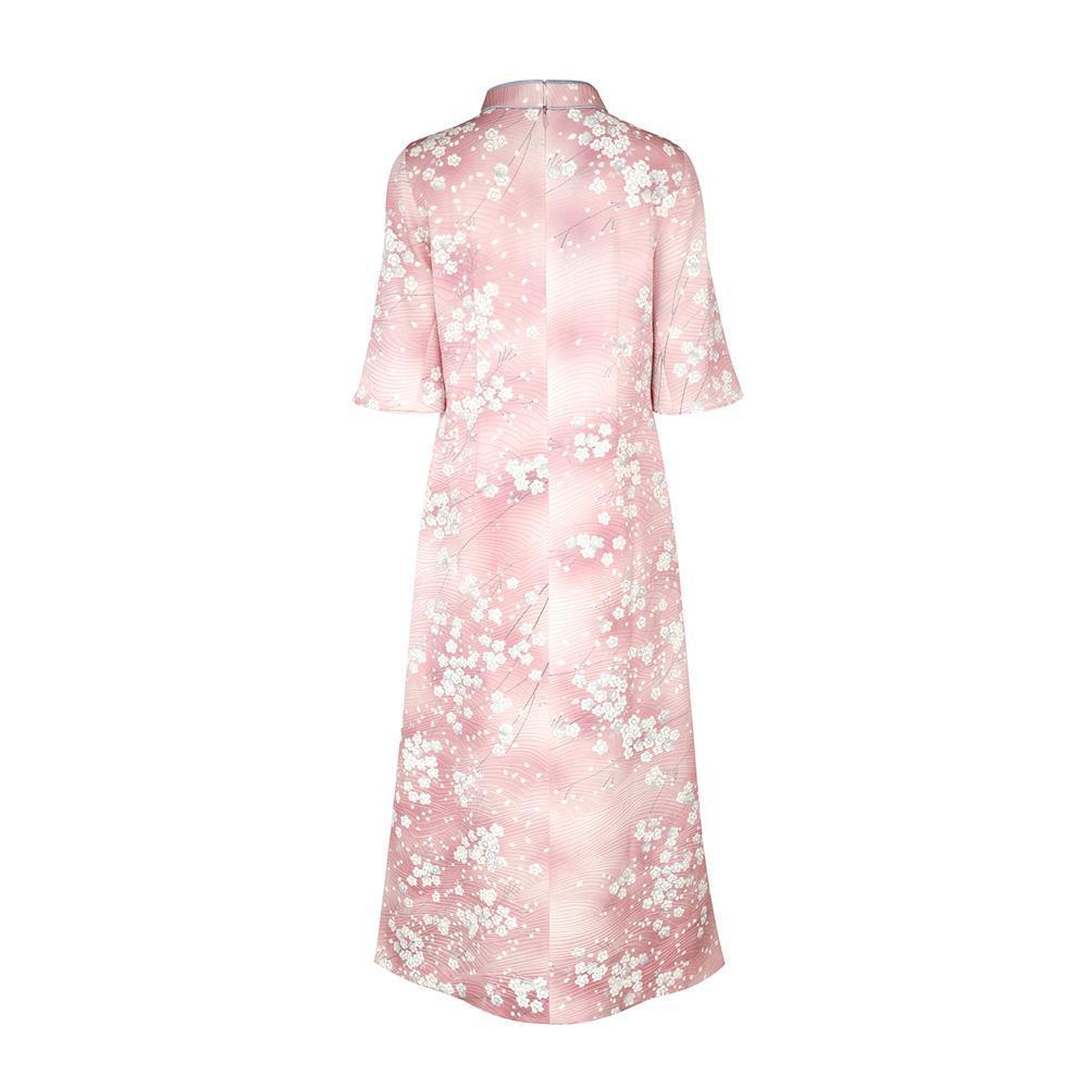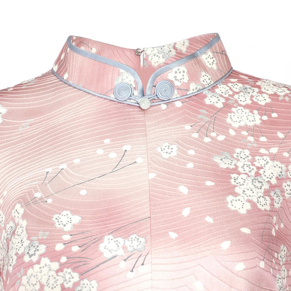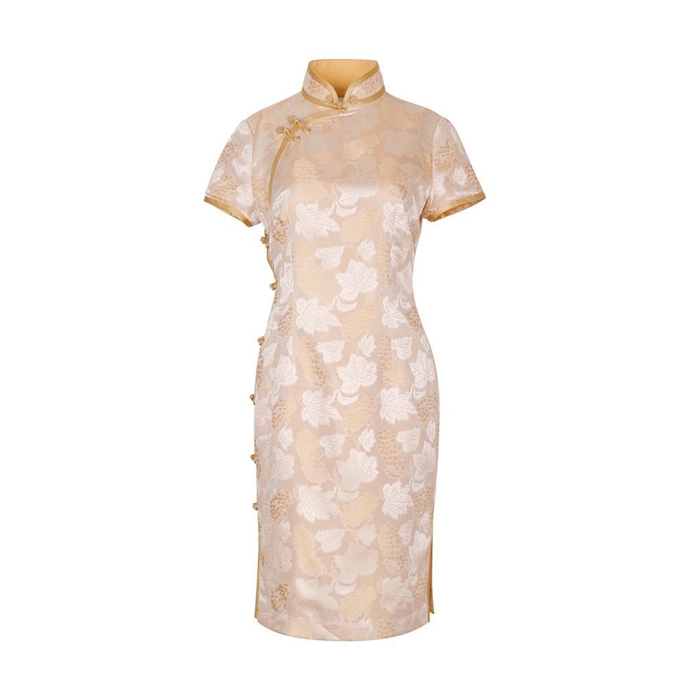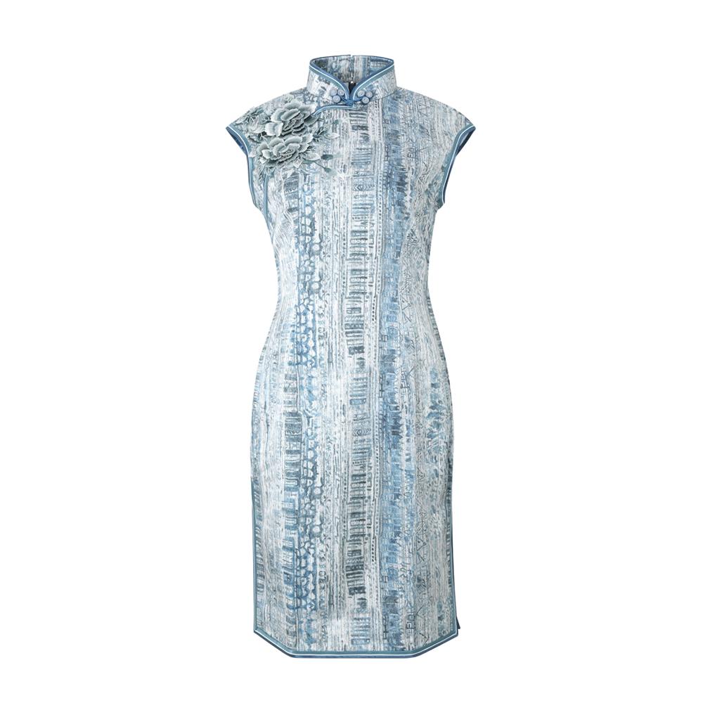 天工閣女裝真絲印花繡花短旗袍(綠)