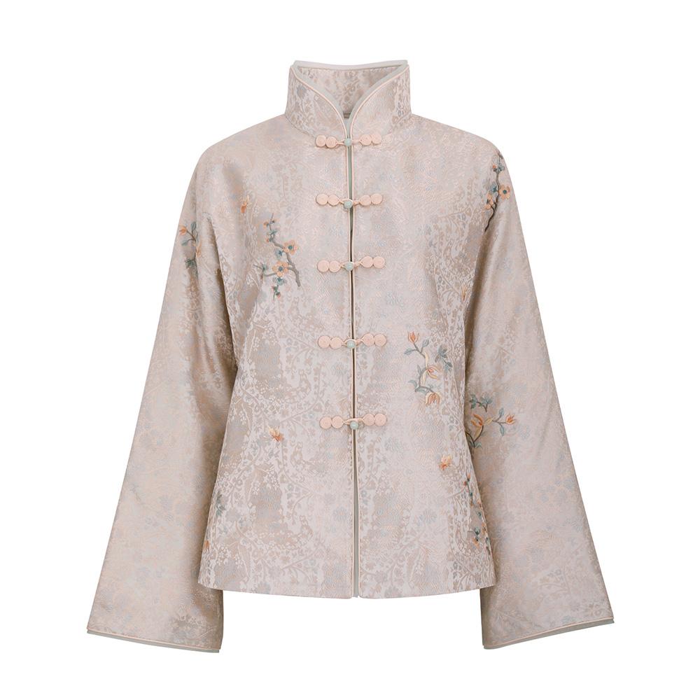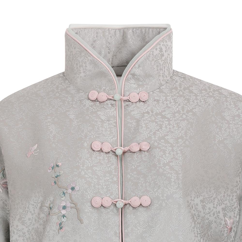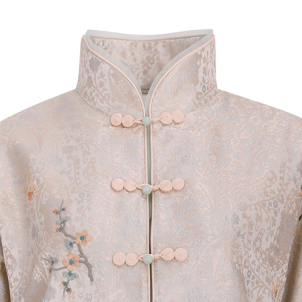 天工閣女裝真絲印花繡花短旗袍(綠)
