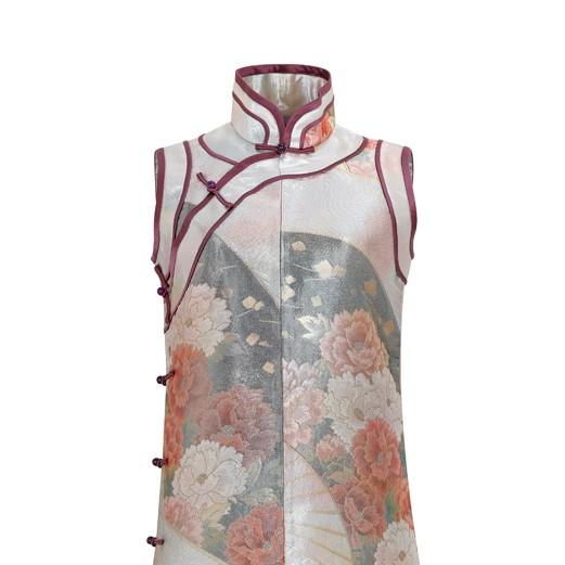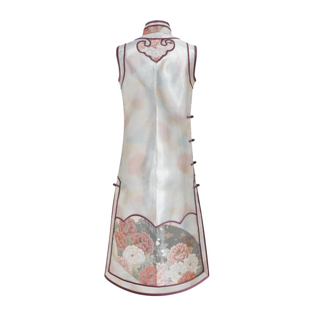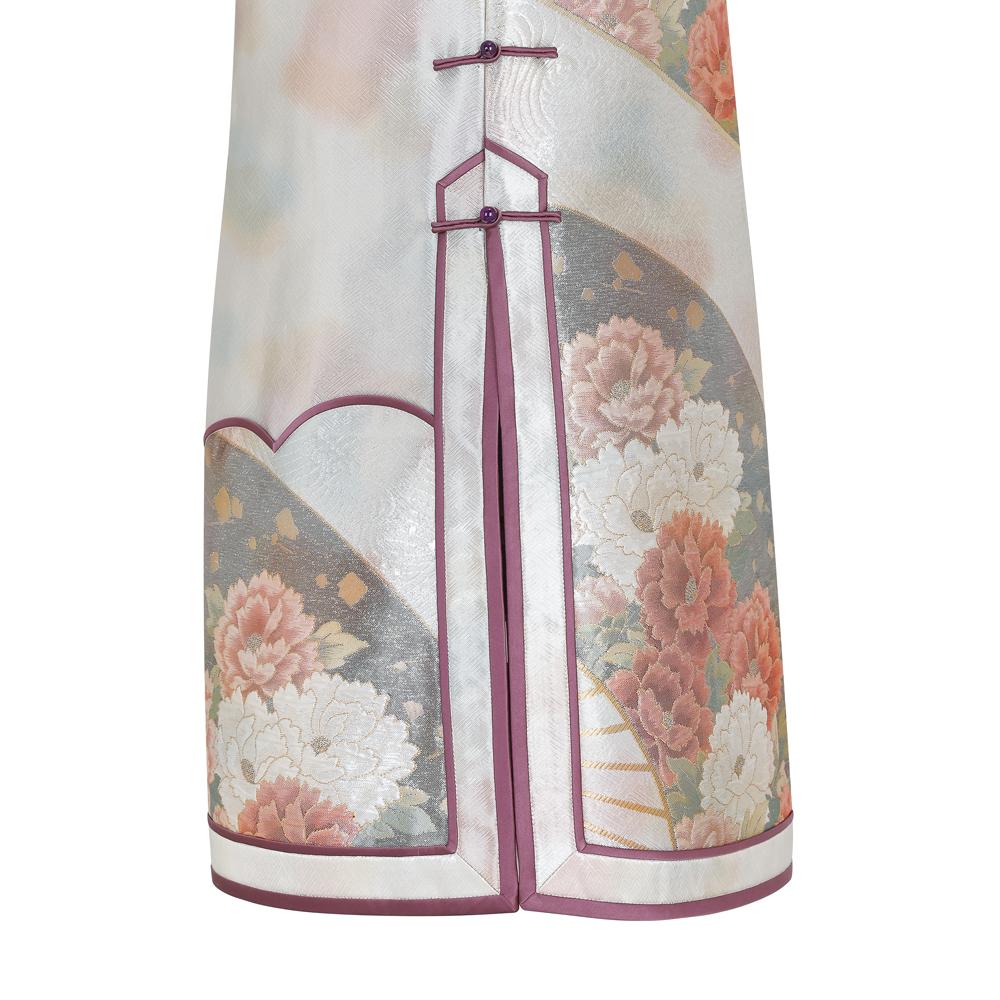天工閣女裝真絲印花繡花短旗袍(綠)