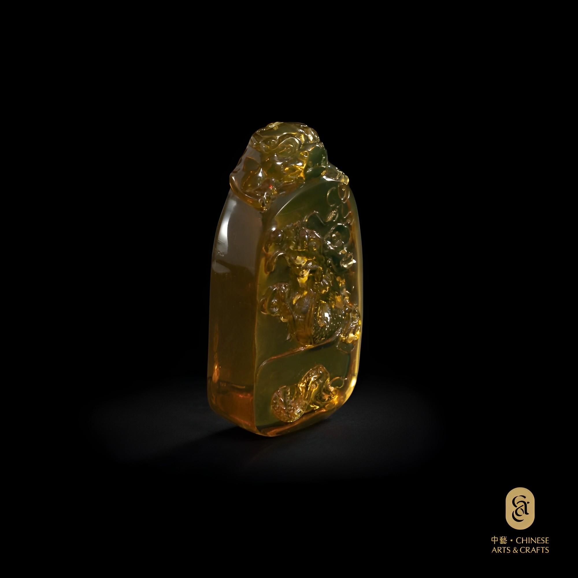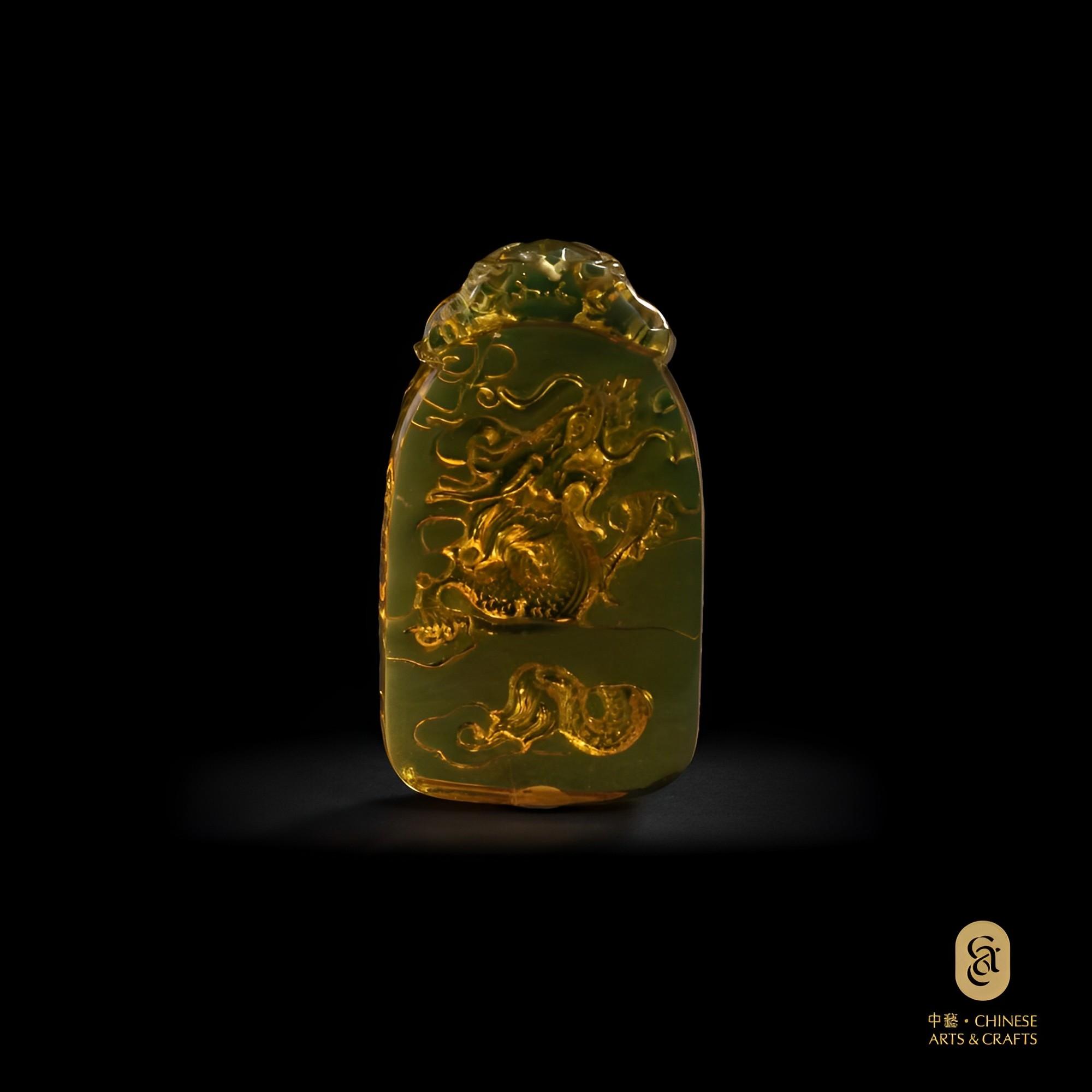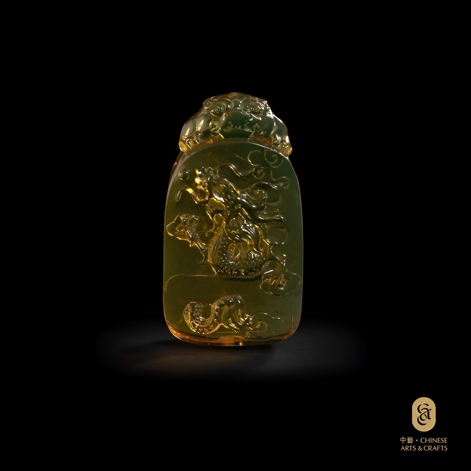 藍琥珀雕刻品吊墜(龍)