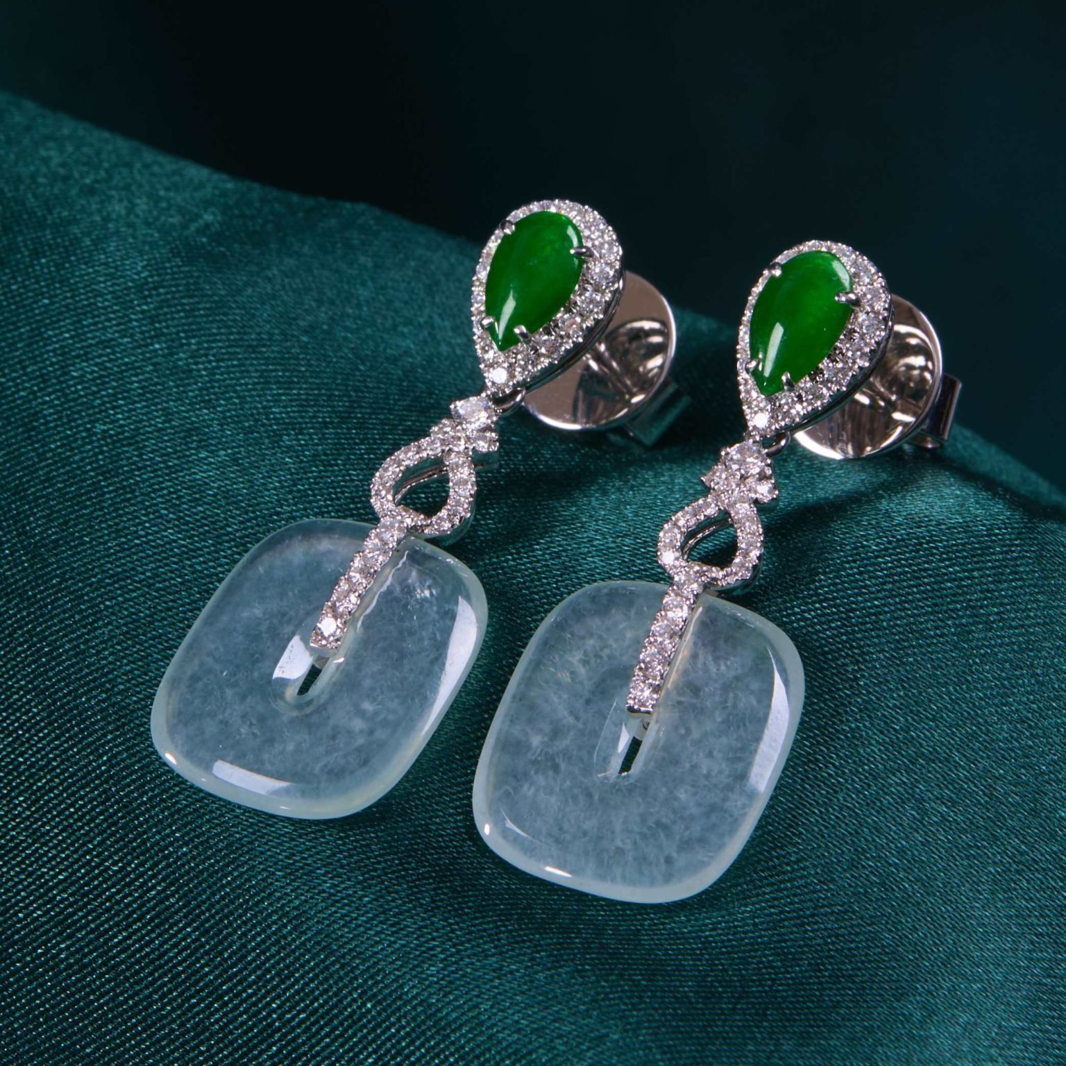 產品材質:天然翡翠(A玉),14k,50D:0.25CT尺寸:長12mm*高27mm*厚1mm **