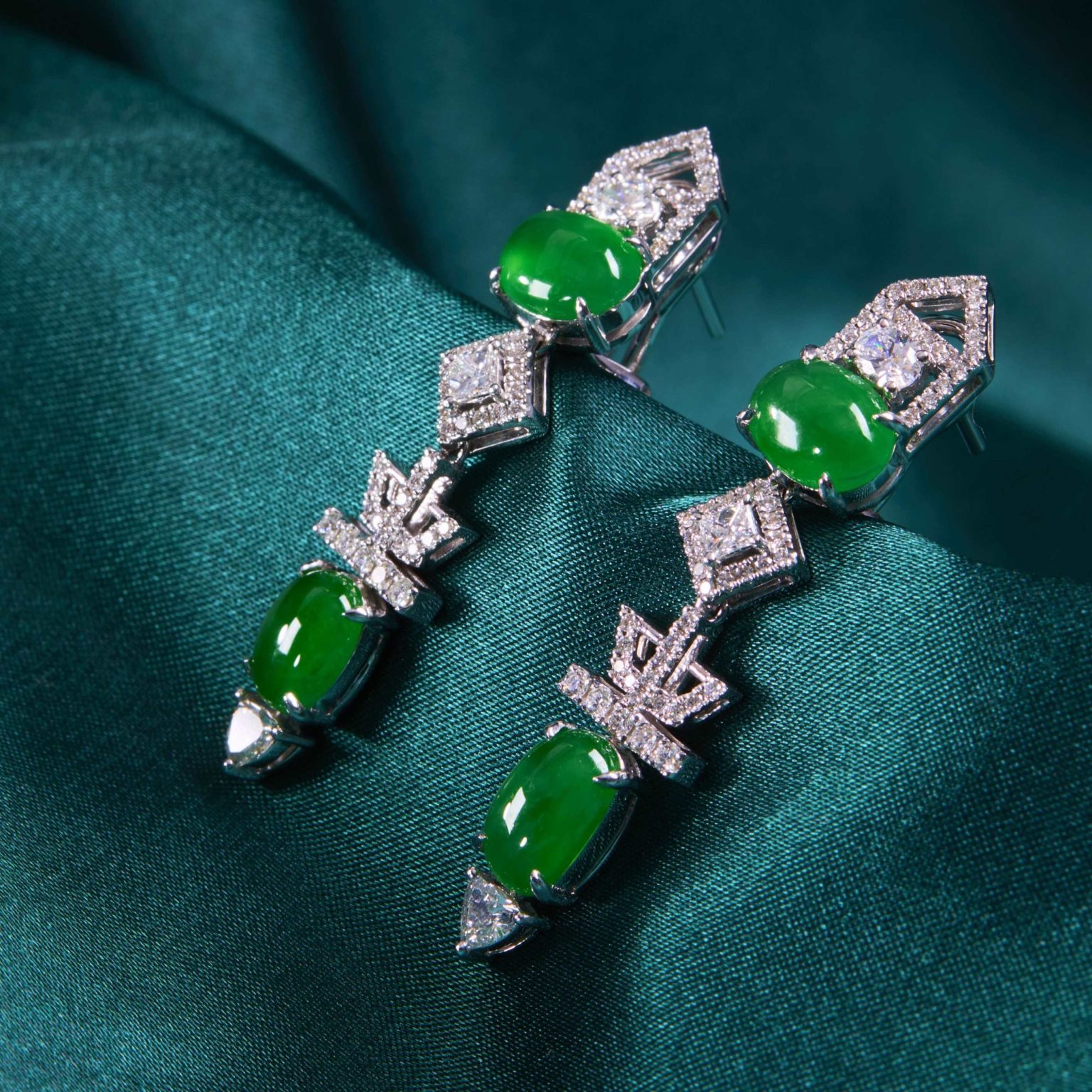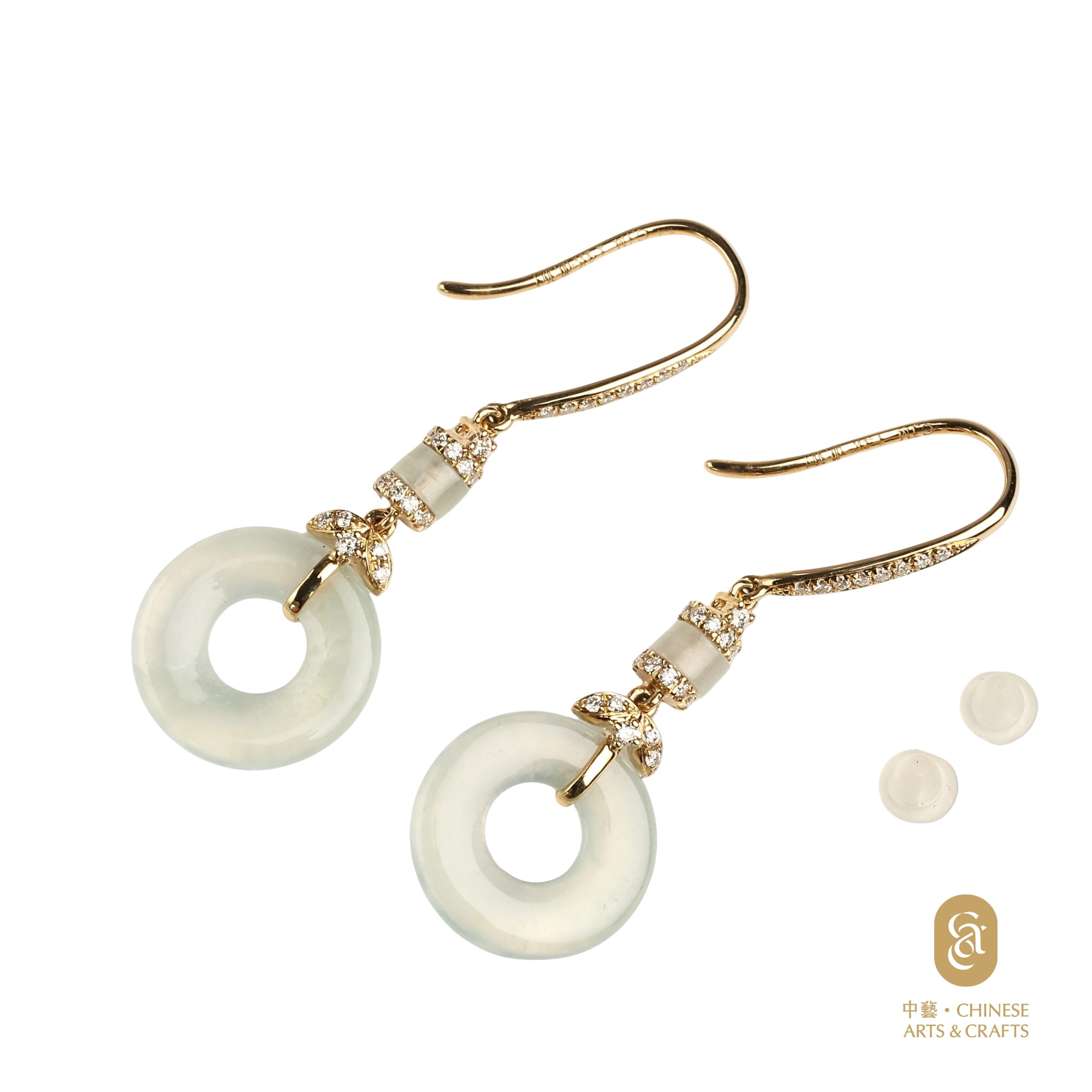 14K白色黃金鑲天然翡翠(A)玉-冰圈鑽石耳勾