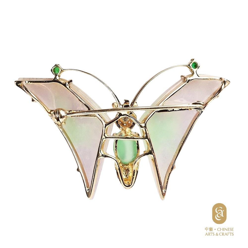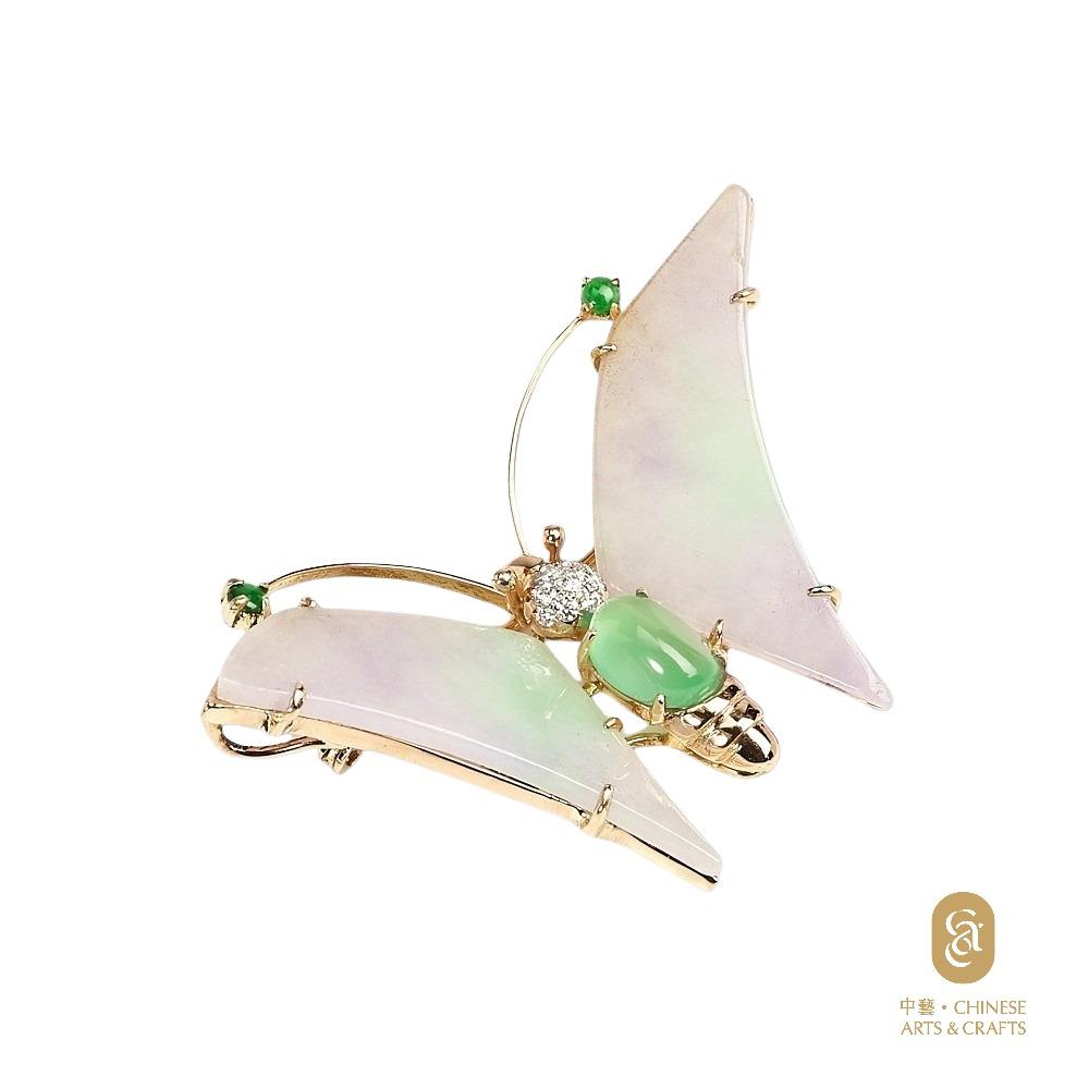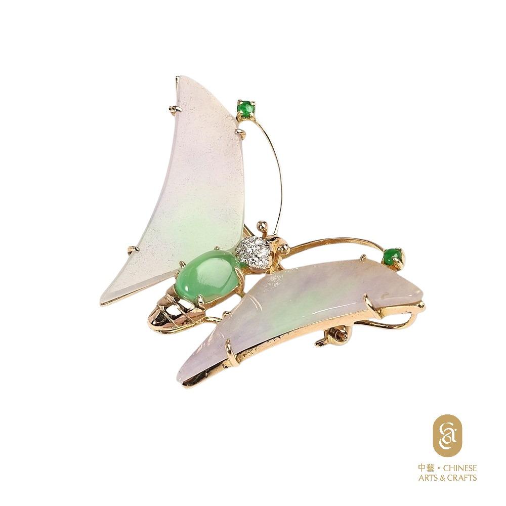 14K黃金鑲天然翡翠(A)玉蝴蝶鑽石別針/吊墜(兩用)