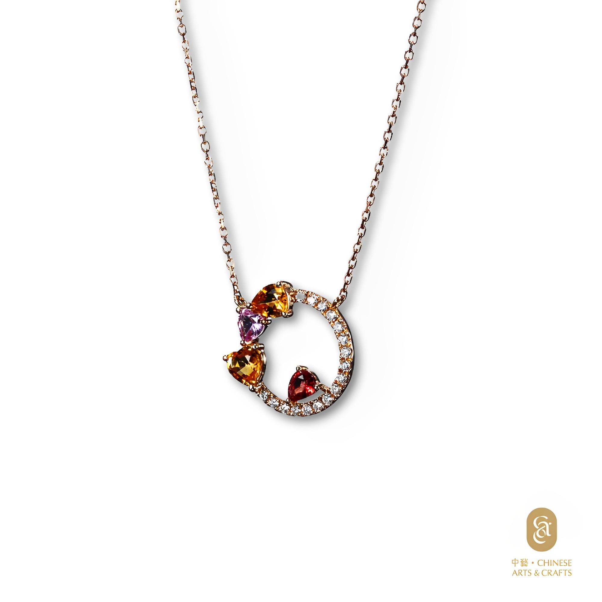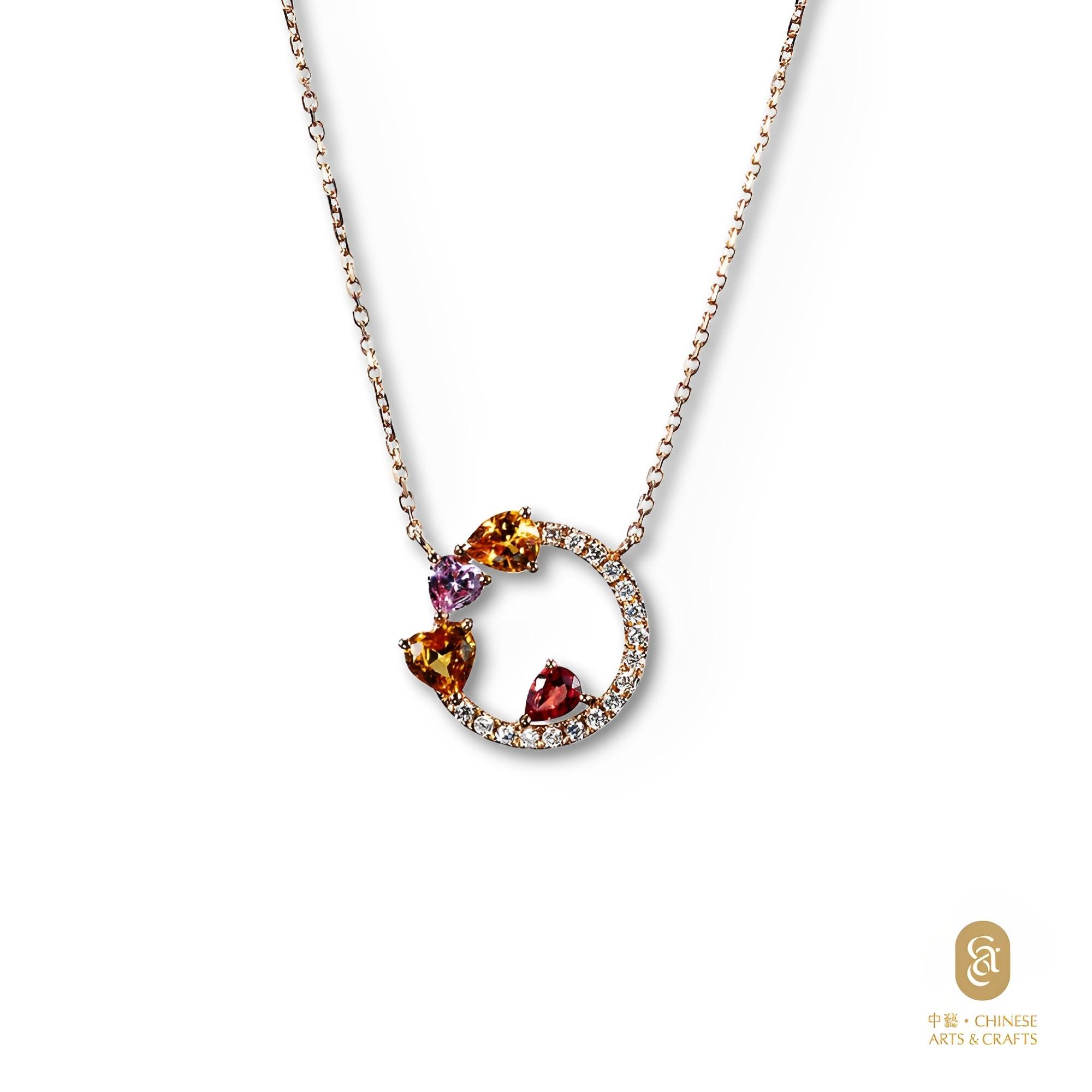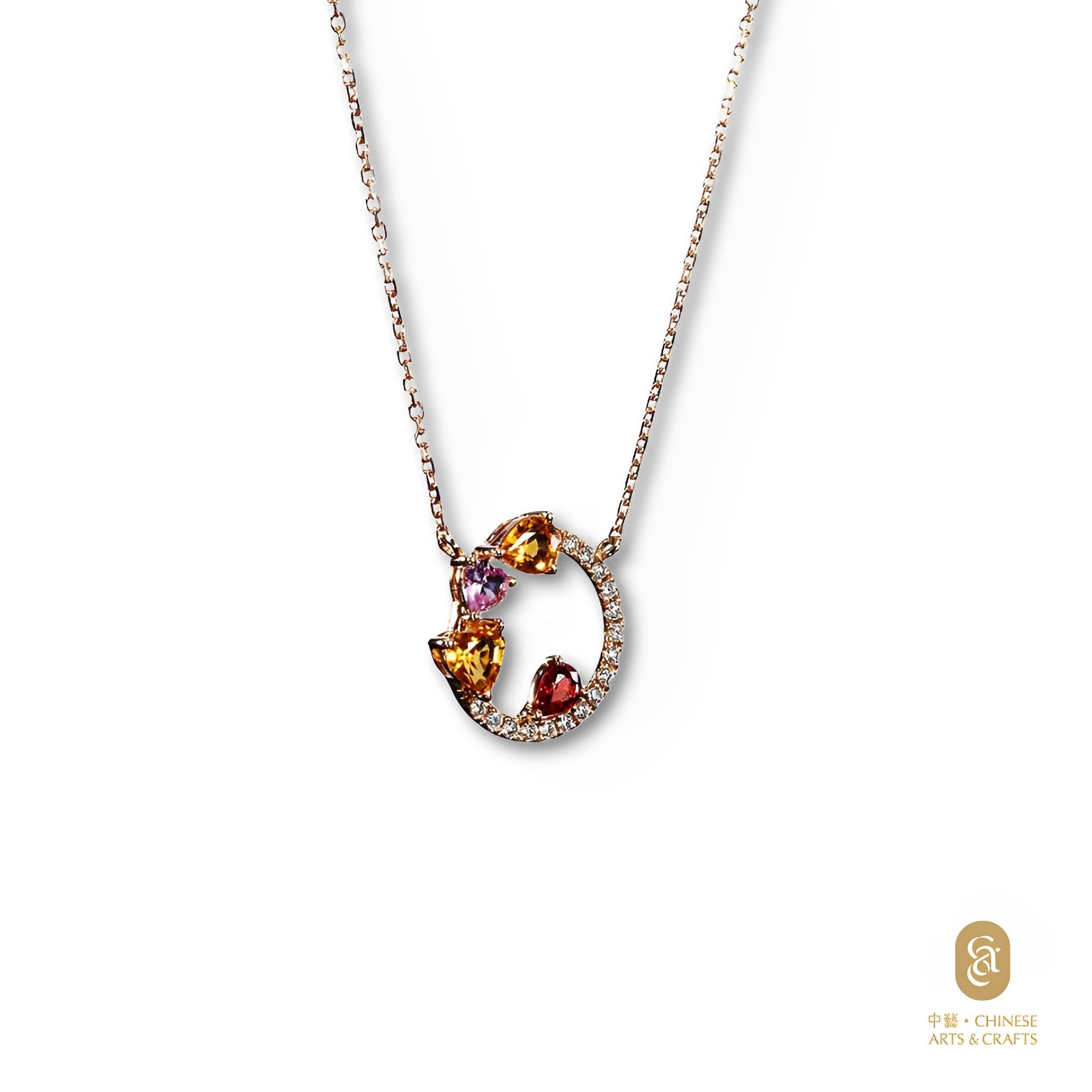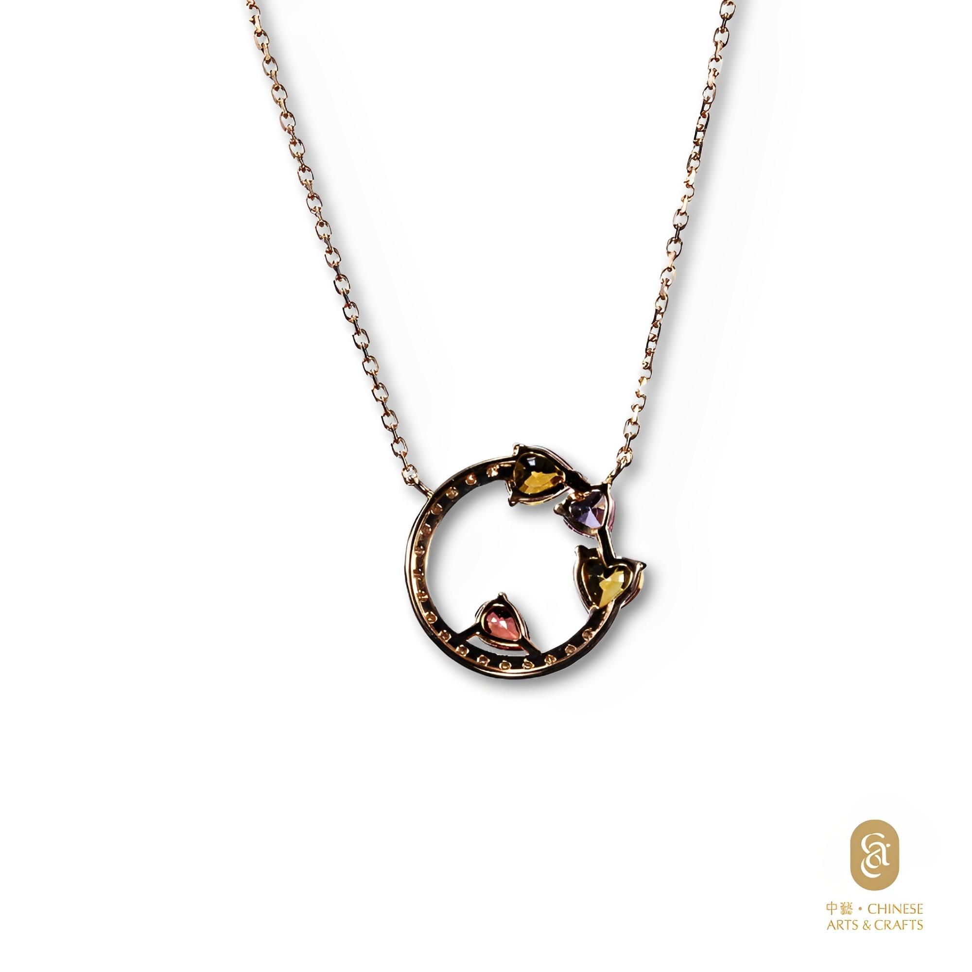 18K玫瑰金鑲 彩色藍寶石花款鑽石項鍊