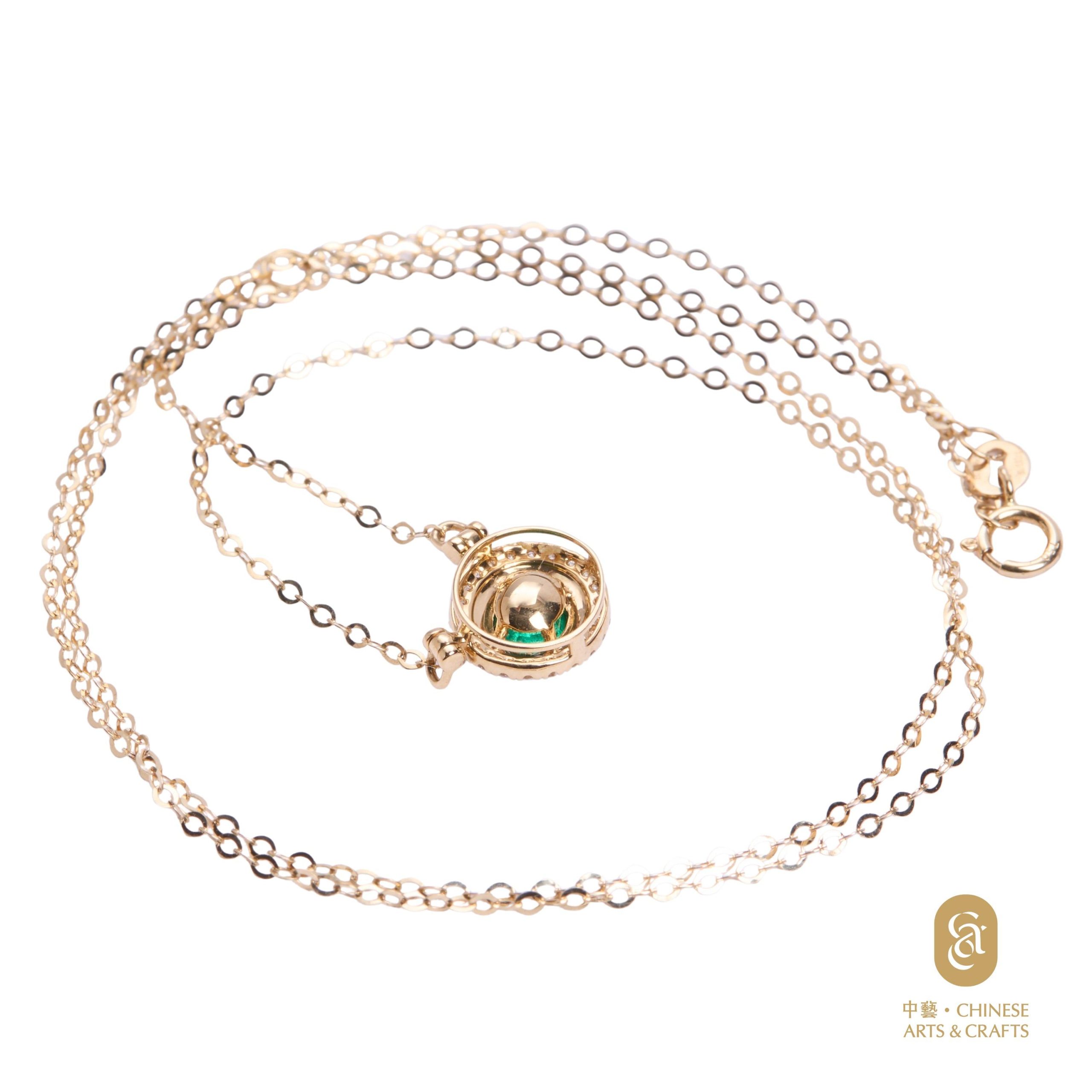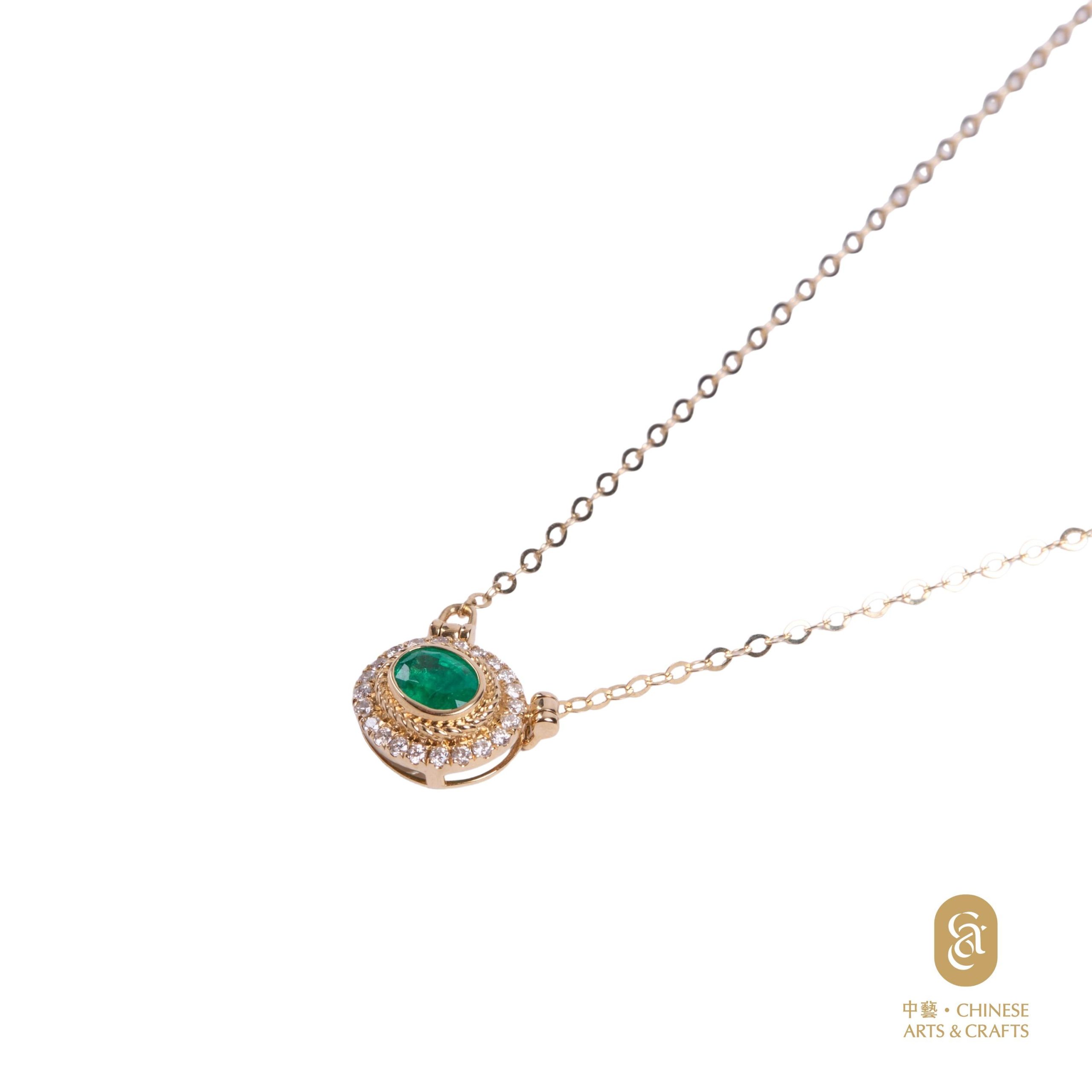 18K黃金鑲祖母綠鑽石花款項鍊